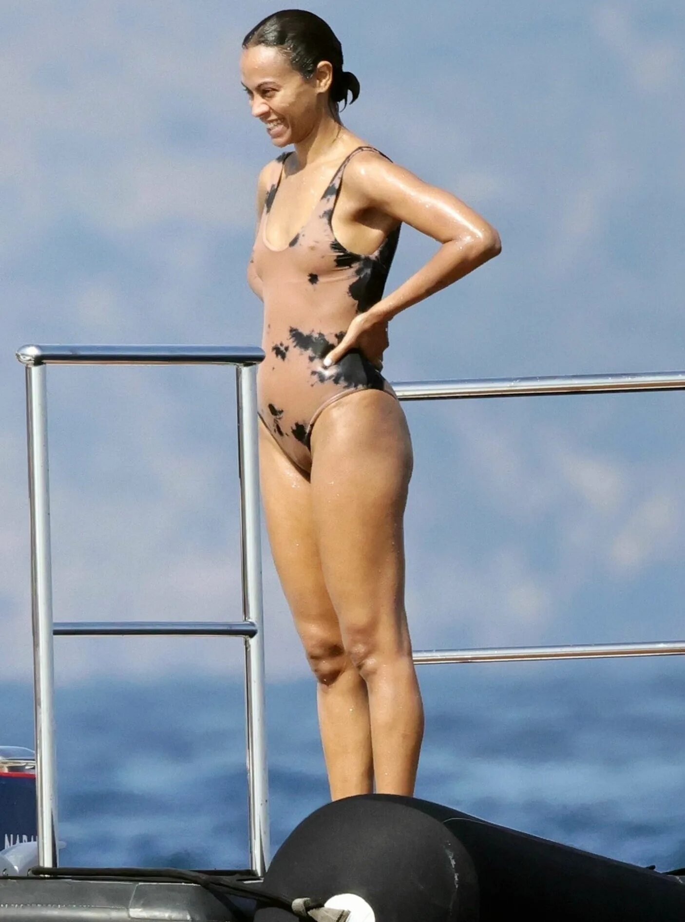 Zoe Saldana on a topless yacht