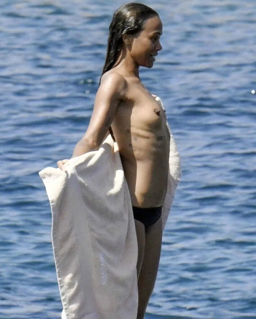Zoe Saldana topless on the beach